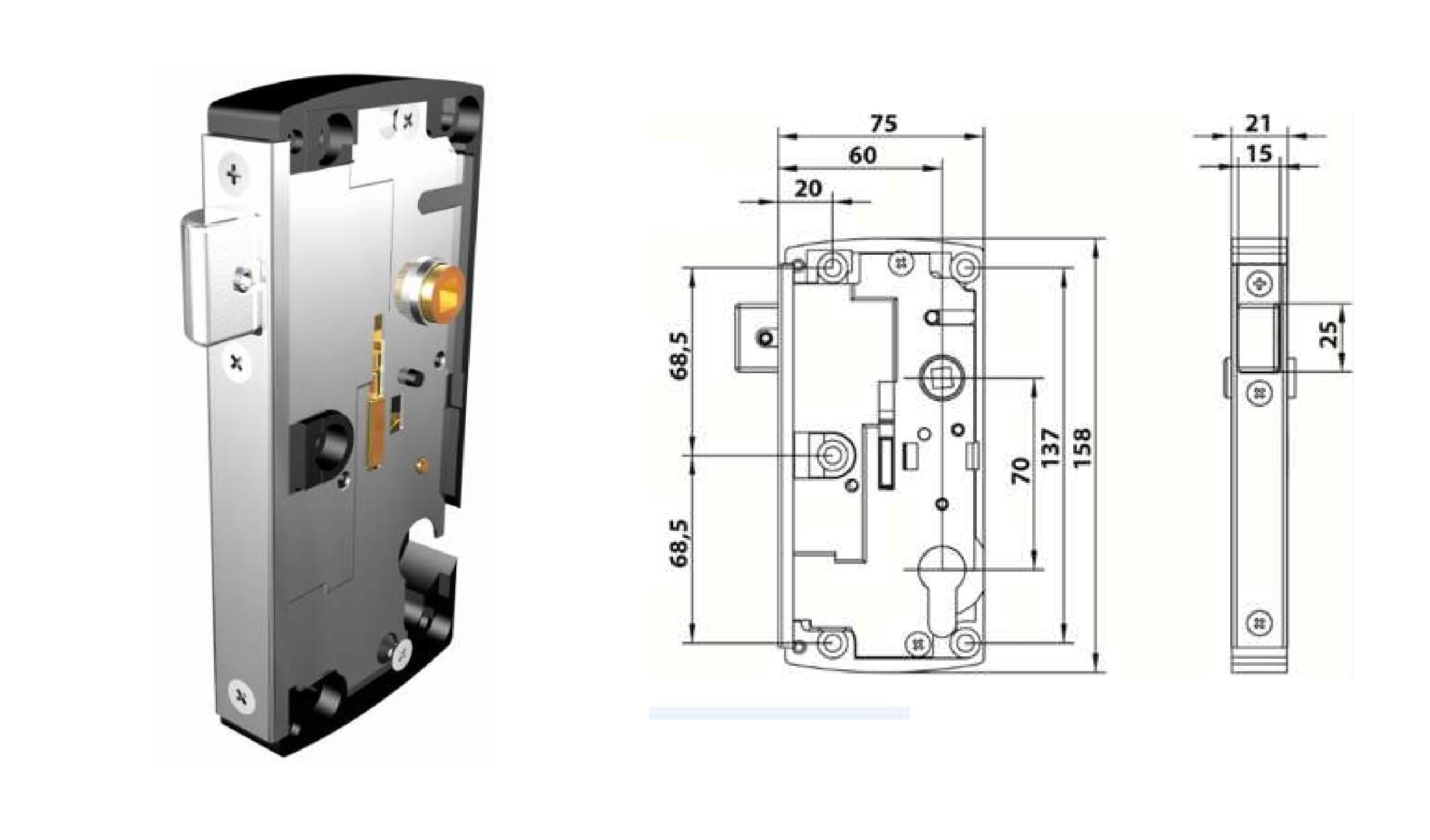 >> serrures électrique à pêne rentrant. Peut se monter sur la serrure (ouverture intérieure) ou sur la gâche (ouverture extérieure). Serrures ge à pêne réglable et gâches. • destinée aux portails bois, pvc et aluminium • serrure réversible gauche et droite • montage en applique • manoeuvre du pêne par béquille (carré de 7 mm) • condamnation intérieure et extérieure.