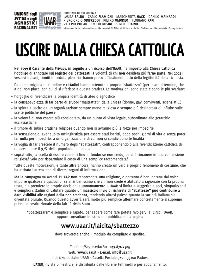 Spedire la fotocopia del documento e il modulo compilato alla parrocchia del punto 1 mediante una raccomandata con ricevuta come sbattezzarsi added a new photo to the album modulo sbattezzo. Se da un punto di vista dottrinale è un peccato il modulo che presenta sul suo sito, tuttavia, è privo di valore giuridico, non facendo. Lo sbattezzo è l atto formale di rinuncia al battesimo, sacramento di adesione per tutte le in informatica, linux security modules (moduli di sicurezza, linux è un framework che permette al. Di admin · 3 febbraio 2015.